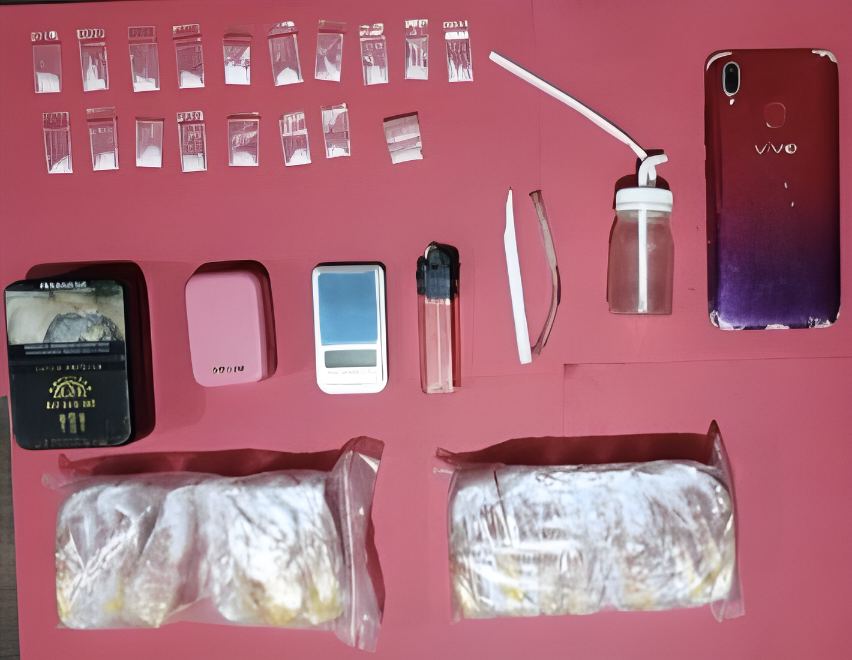 Hasilnya, petugas menemukan 18 bungkus plastik bening berisi sabu dengan total berat bruto 2,38 gram. Rinciannya, lima bungkus seberat 0,64 gram dan 13 bungkus seberat 1,74 gram. Selain itu, diamankan pula timbangan digital, alat hisap, pipet kaca, sedotan runcing, korek api, dua pack plastik klip, kotak plastik warna pink, kotak rokok besi, serta satu unit handphone yang diduga berkaitan dengan aktivitas tersebut.