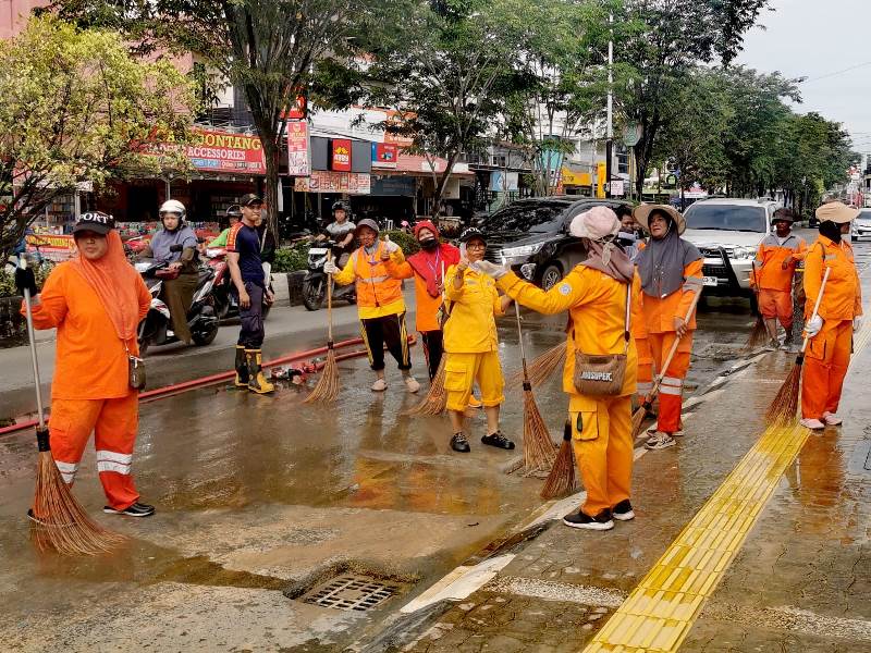 Belasan personel kebersihan diterjunkan ke lokasi dibantu dua unit mobil tangki air milik Disdamkartan, masing-masing berkapasitas 5.000 liter. Fokus utama dari kegiatan ini adalah membersihkan tumpukan pasir yang terbawa banjir dan mengendap di sepanjang ruas jalan, yang berpotensi membahayakan pengguna jalan jika tidak segera ditangani.