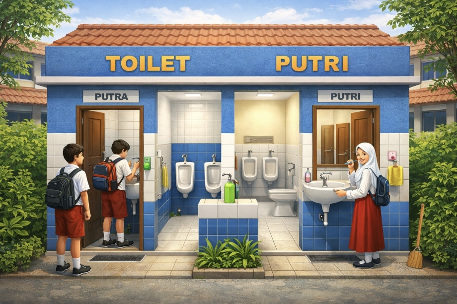 Ilustrasi toilet layak di sekolah. (FOTO: AI generated)