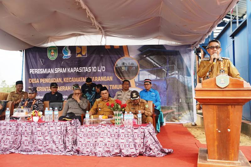 KARANGAN. Bupati Kutai Timur (Kutim) Ardiansyah Sulaiman meresmikan Sistem Penyediaan Air Minum (SPAM) berkapasitas 10 liter/detik di Desa Pengadan Lama, Kecamatan Karangan, pada Senin (14/7/2025). Peresmian SPAM ini merupakan yang kedua setelah sebelumnya di Desa Bumi Rapak, Kecamatan Kaubun, menegaskan komitmen pemerintah daerah dalam memenuhi kebutuhan air bersih bagi masyarakat.
