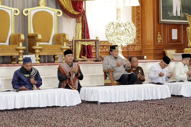 TENGGARONG. Suasana khidmat menyelimuti Kedaton Kesultanan Kutai Kartanegara Ing Martadipura. Menjelang dimulainya perayaan adat Erau, kesultanan menggelar tradisi haul atau doa bersama untuk para raja dan sultan terdahulu yang telah wafat. Tradisi ini bukan sekadar ritual seremonial. Bagi masyarakat Kutai, haul menjadi momen penghormatan terhadap leluhur sekaligus refleksi atas nilai-nilai spiritual yang diwariskan. Doa bersama dilakukan secara jamak, dilanjutkan dengan pembacaan Maulid Nabi Muhammad SAW. Lantunan doa dan shalawat bergema, menyatu dengan suasana sakral di kedaton tua yang menyimpan jejak panjang sejarah Kutai.