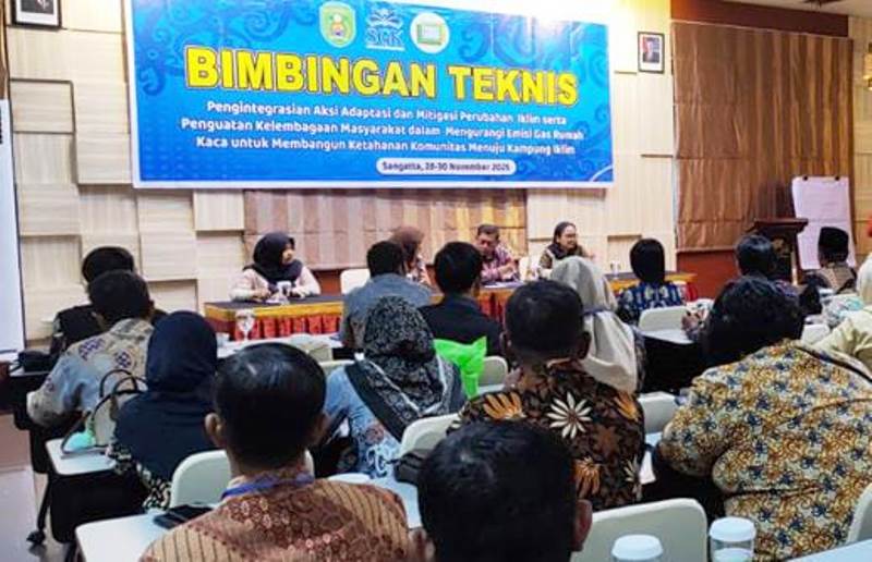 SANGATTA. Dinas Lingkungan Hidup (DLH) Kutai Timur (Kutim) menggelar Bimbingan Teknis (Bimtek) Pengintegrasian Aksi Adaptasi dan Mitigasi Perubahan Iklim serta Penguatan Kelembagaan Masyarakat dalam Mengurangi Emisi Gas Rumah Kaca untuk Membangun Ketahanan Komunitas Menuju Kampung iklim, berlangsung di Royal Victoria Hotel, Sangatta, Jumat (28/11/2025)