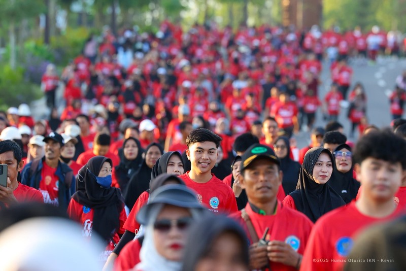 NUSANTARA. Peringati Hari Anti Narkotika Internasional, Otorita IKN bersama dengan Forum Kesepakatan Masyarakat Sepaku dan Badan Narkotika Nasional (BNN) Provinsi Kalimantan Timur diwakili oleh BNN Kota Balikpapan menyelenggarakan kegiatan Nusantara Fun Walk di Nusantara pada hari Minggu (13/07/2025).