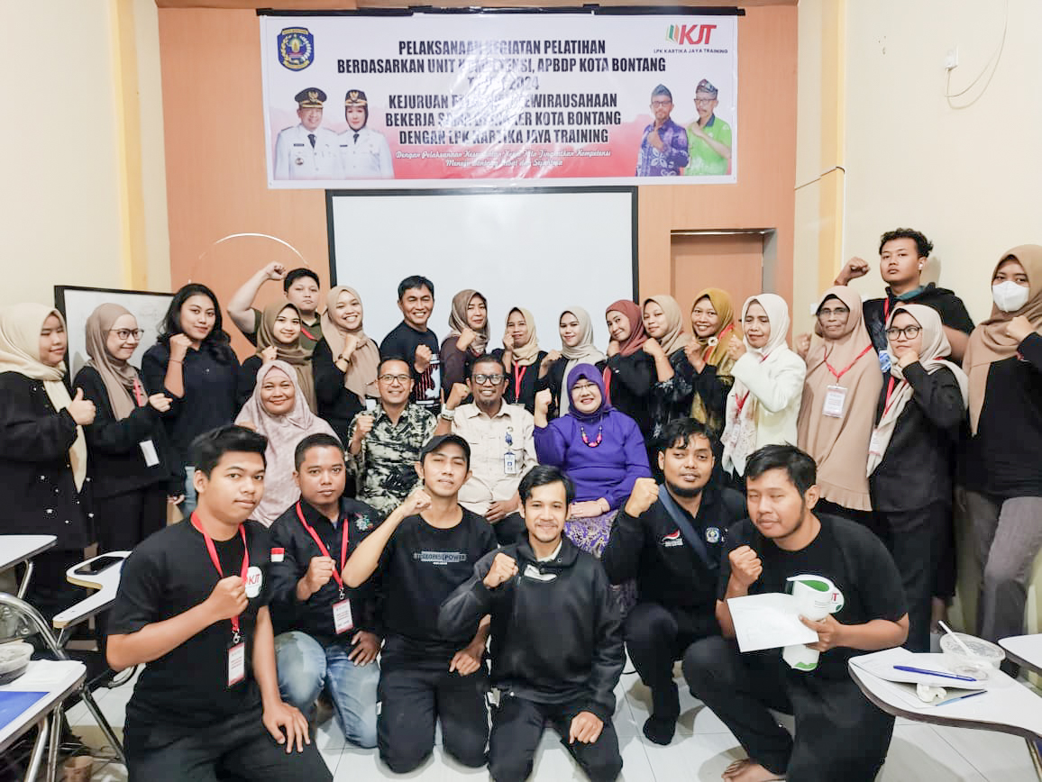 LPK Kartika Jaya Training bekerja sama dengan Dinas Ketenagakerjaan (Disnaker) Kota Bontang menggelar pelatihan kewirausahaan yang dilanjutkan dengan uji kompetensi bersertifikasi Badan Nasional Sertifikasi Profesi (BNSP).