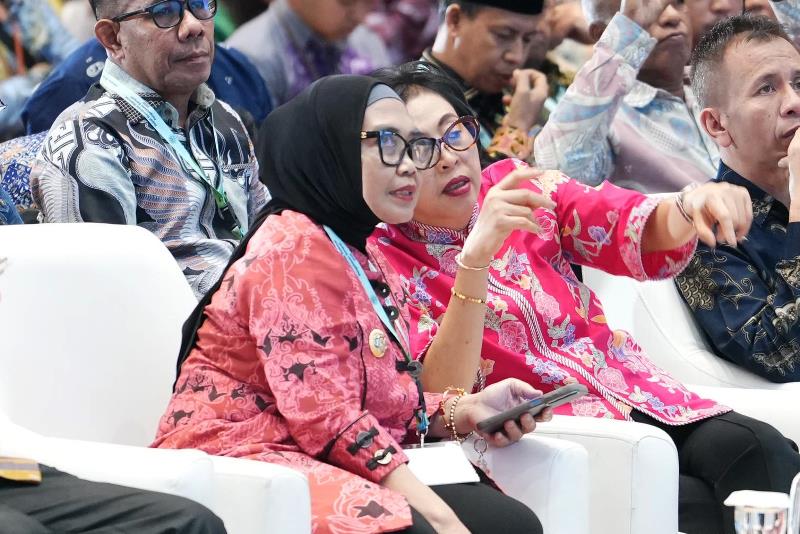 Wali Kota Bontang Neni Moerniaeni berbincang dengan Sekjen KLHK Rosa Vivien Ratnawati di kegiatan peringatan Hari Lingkungan Hidup Sedunia 2025 (FOTO: Indra/narasipedia.net)