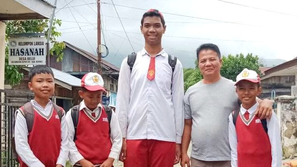 Sagil, siswa SD di Kerinci yang tingginya 2 meter. Foto: Dok. Istimewa
