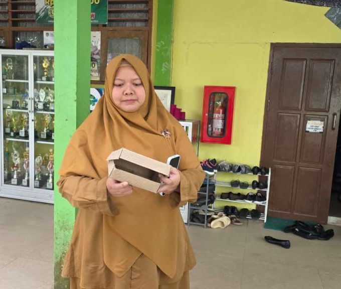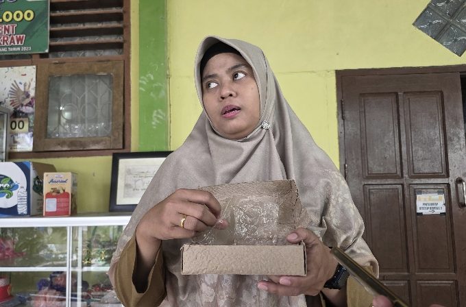 Guru pendamping SMPN 5 Bontang, Ayu Fachtyanur, menujukan kardus olahan siswa-siswi SMPN 5 Bontang. (FOTO: Re/narasipedia.net) BONTANG. Gaya hidup ramah lingkungan perlu ditanamkan...