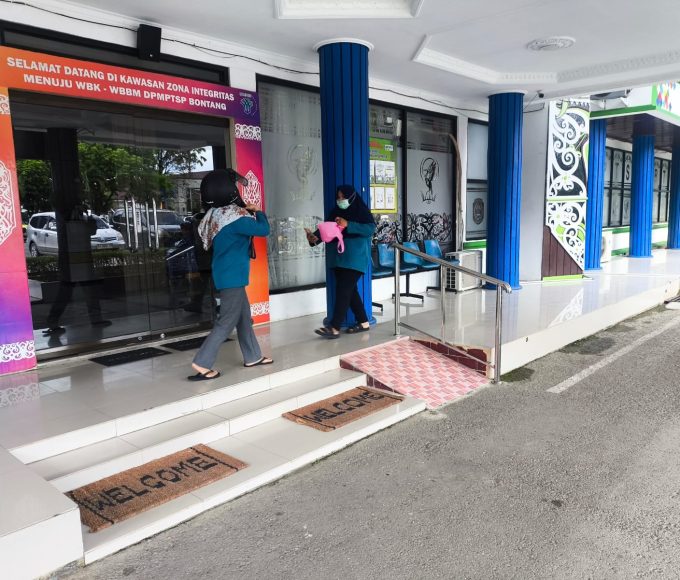 Jalur disabilitas dan lansia yang disediakan DPMPTSP tepat di depan pintu masuk kantor pelayanan di Jalan Awang Long, Kelurahan Bontang Baru. (FOTO: Wi/narasipedia.net)...
